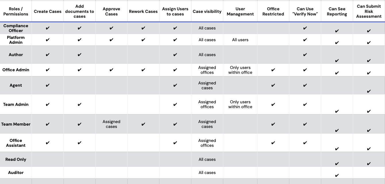 The First AML Platform offers different user roles to provide flexibility and control over access and permissions. User roles determine the level of functionality and access each user has within the platform.